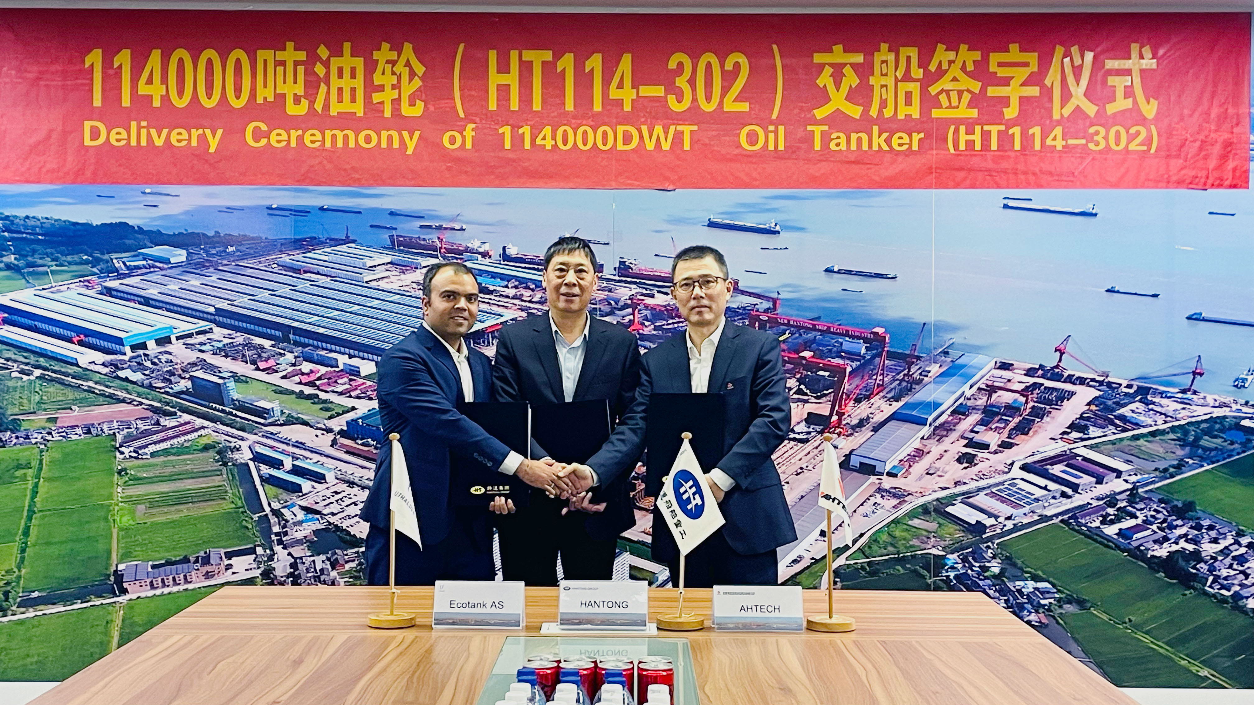 12月10日,韓通集團(tuán)為挪威船東Uthalden建造的首艘114000噸油輪“MH HIGHLANDER”(船體號(hào):HT114-302)順利簽字交付。