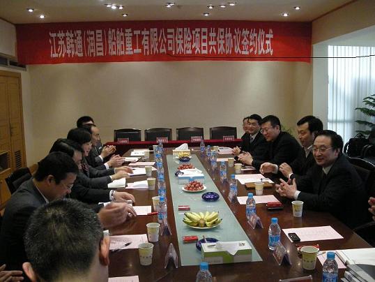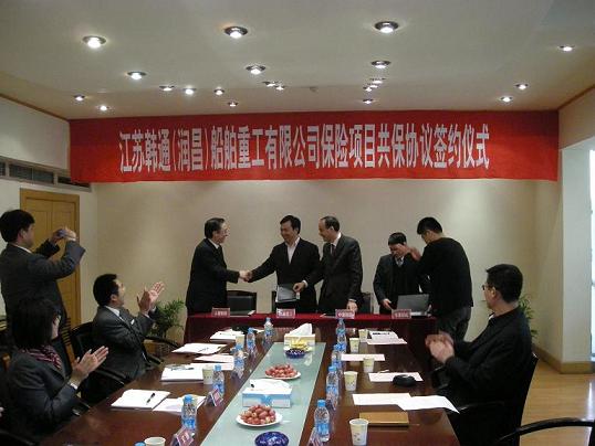 3月24日,在中國銀行南通分行的會議室,舉行了隆重的韓通與中銀保險、中國人保的長期戰(zhàn)略共保協(xié)議的簽訂儀式。該協(xié)議的簽訂,將有助于韓通與保險業(yè)、銀行的緊密合作,增強企業(yè)抗風險的能力。