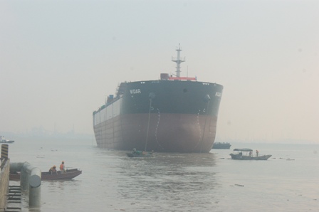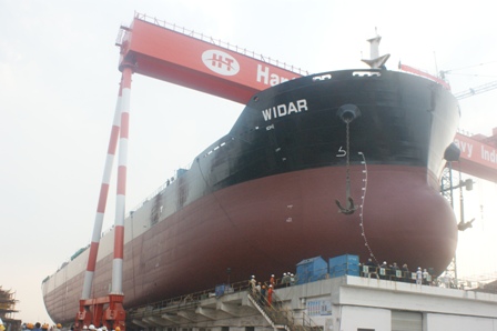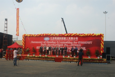 2010年10月8日江蘇韓通船舶重工有限公司迎來了又一個(gè)值得慶祝和紀(jì)念的日子—HT026的命名及下水儀式。該57000DWT散貨輪為我司為船東PD建造,入LR船級(jí)社,該船被命名為“WIDAR”。韓通重工副總經(jīng)理陳興先生,塔姆克航運(yùn)公司迪特里?!に房讼壬ツ缚死锼雇∧取た破湛?,Peter Doehle公司W(wǎng)erner Gerdts先生,英國勞氏船級(jí)社高級(jí)驗(yàn)船師田莊先生等參加了該儀式并發(fā)表講話。