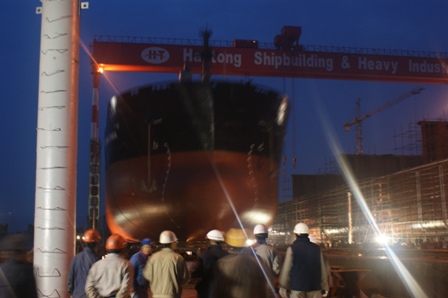 2011年4月6日早上5:00,我司為大新建造的57000DWT散貨輪(HT069)在韓通1號(hào)船臺(tái)成功下水,該船入BV船級(jí)社。陳林軍常務(wù)副總,李繼念副總,李泰然總助,船東代表及船級(jí)社代表參加該儀式。