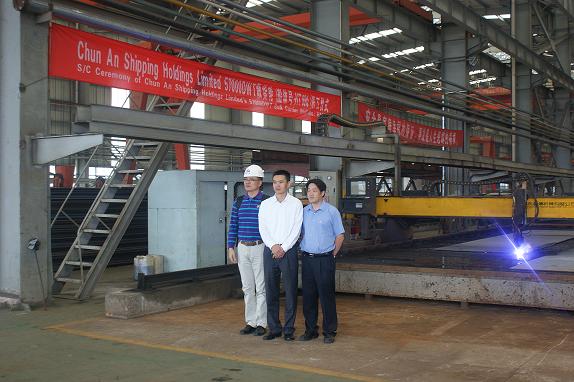 2011年9月20日,我司為春安船東建造的57000噸散貨輪(船體號(hào):HT100)開(kāi)工儀式在韓通新船體車(chē)間順利舉行,該船入NK船級(jí)社。陳興副總及船東、船級(jí)社代表參加了該儀式。
